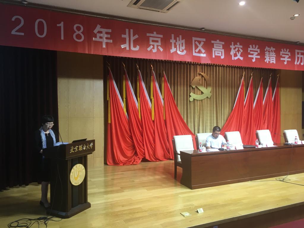 为进一步规范北京地区普通高等教育学生学籍学历管理,总结教育部41号令实施以来的工作经验,部署下阶段重点任务,北京市教委于5月31日下午在北京联合大学召开“2018年北京地区高校学籍学历工作交流会”。北京市教委葛巨众委员、北京市教委学生处处长沈聪伟、副处长周凯出席会议并发言。我校党委副书记沈小静、学生处处长丁健和教务处学籍管理工作人员参加了会议。